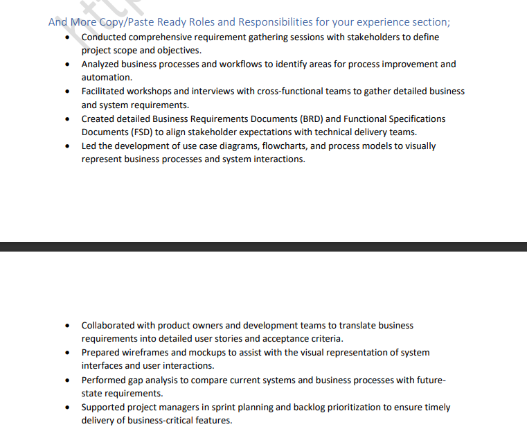 🧑💻 Tailored for Impact: Focused on Agile, Scrum, requirement gathering techniques, FSD, SRS, BRD, user stories, and more. Every element is designed to reflect what matters most in the field.