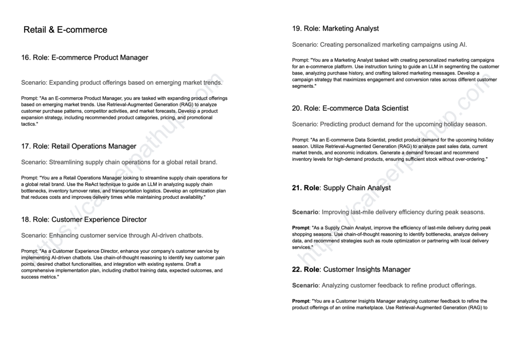 - Practical Application Across Industries: Explore 140+ real-world prompts tailored for Banking, Marketing, Healthcare, and other vital sectors, ready to be implemented in your work.